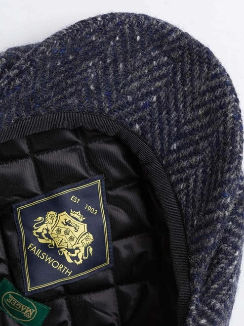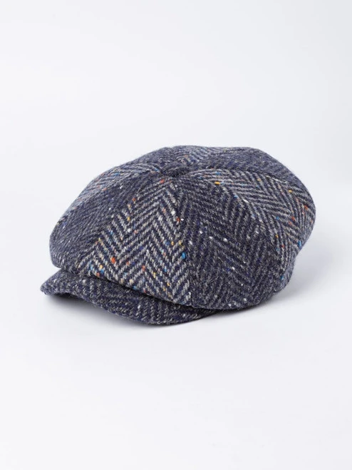A jazzy patchwork of blue colours and flecks brought to you in a soft and pleasingly plump baker boy style.