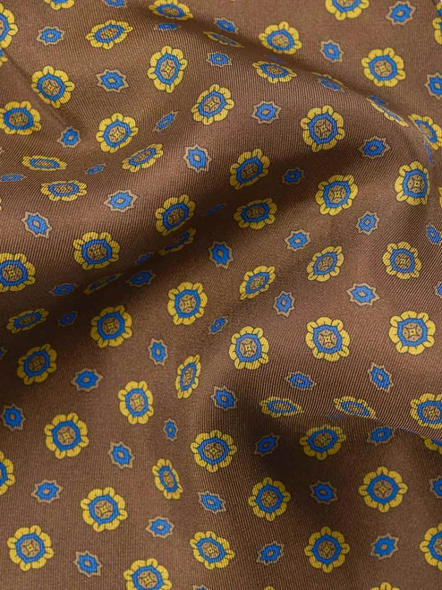 Silk against the skin is a wonder, and with the ease of tying, the intricate geometric design of our 100% silk Brown foulard cravat will add a touch of nuance to your outfits.