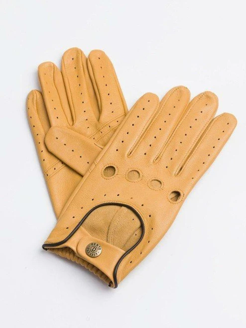 The Dents family of Worcester, England, have been creating gloves since 1777 and that experience goes to make the ultimate driving gloves. Soft and supple in tan cork leather, they will fit you like a second skin. Beautifully stitched and finished with their signature perforation details and popper fastening. Slip them on and you are ready for a standing start at Le Mans.