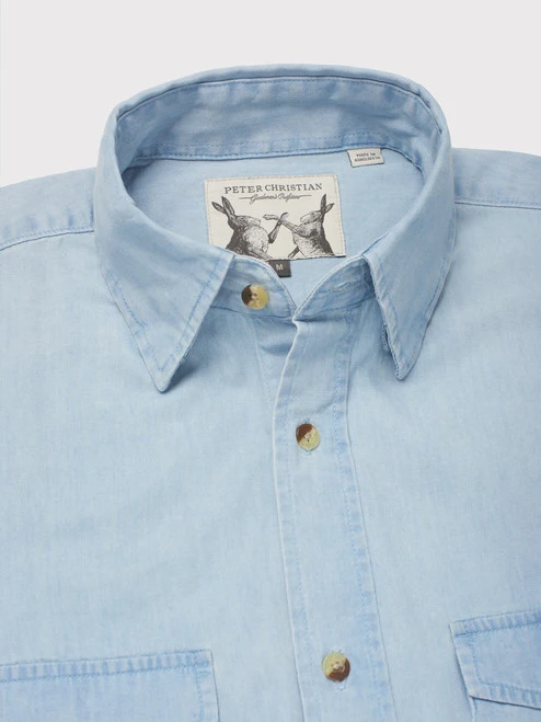 The look of denim but lighter, Chambray is perfect for the warmer months. A relaxed, casual style with button down pockets and collar.