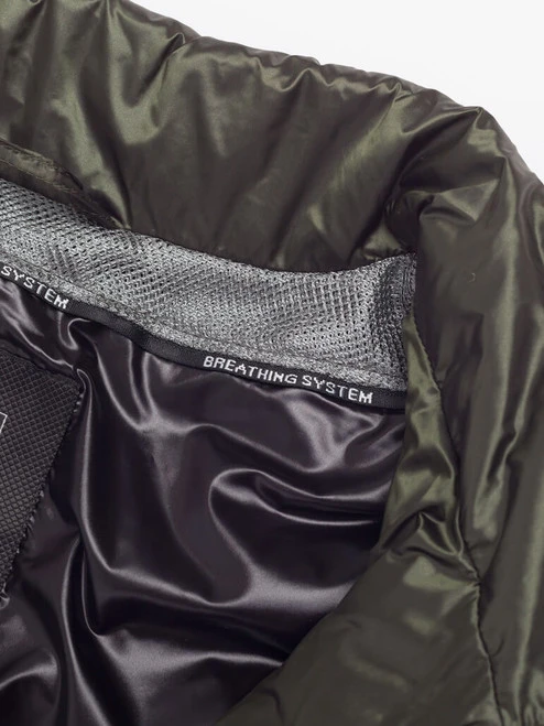 A beautifully minimal exercise in casual insulation. This green jacket by Geox takes a scientific approach to keeping out cold and rain, while remaining comfortable, breathable and stylish. A polyester outer shell and real down filler for lightness and warmth.