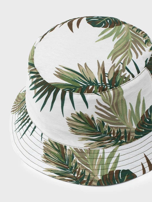 Khaki on one side, tropical leaves on the other. Casual, reversible, packable – perfect for spring and summer.