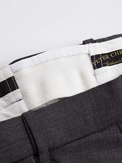 ‘Super 100s’ is a weaver’s term that refers to the superfine texture of the wool used to make these grey trousers. Light as thistledown and silky soft. They are cool on warm days and warm on cool ones. Smart choice!