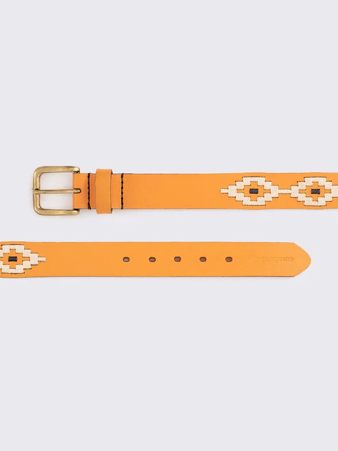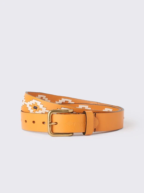 New to our collection, a traditional Argentinian artisan leather belt. Originally made by gauchos, the cowboys of South America, from hides of the cattle they cared for. This diamond design is inspired by the landscape of the Andes mountains.