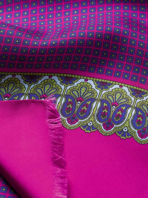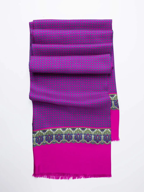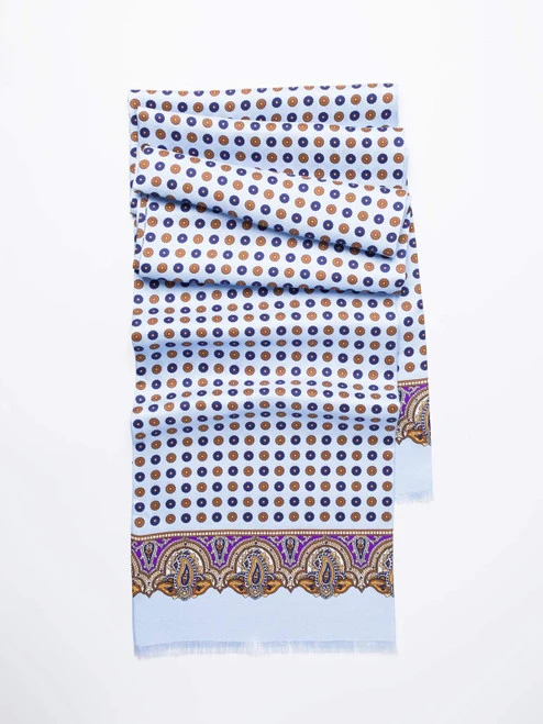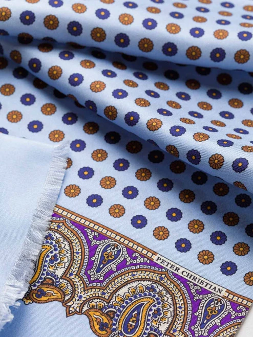 A perfectly balanced design of a delicate floral pattern, contrasted with a panel of intricate paisley. Beautifully soft – a delight to tie around your Gregory.