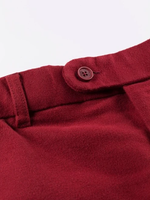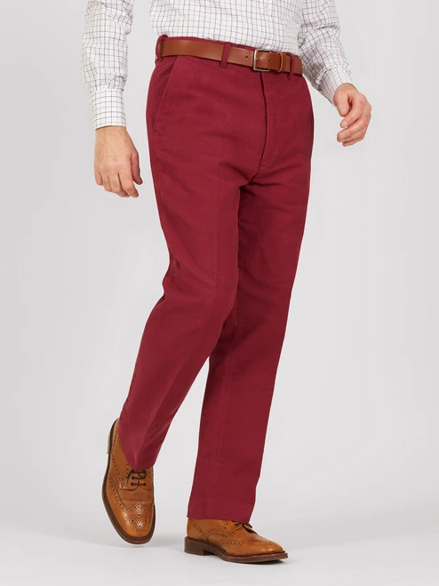 Soft as a baby’s bottom and rakish as a guardsman’s smile, Peter Christian Mulberry Red Moleskin Trousers are tailored with a slimming flat front. With leg lengths from 28″ to 34″ they’ll fit everyone from the bugler boy to the tallest cavalry officer.