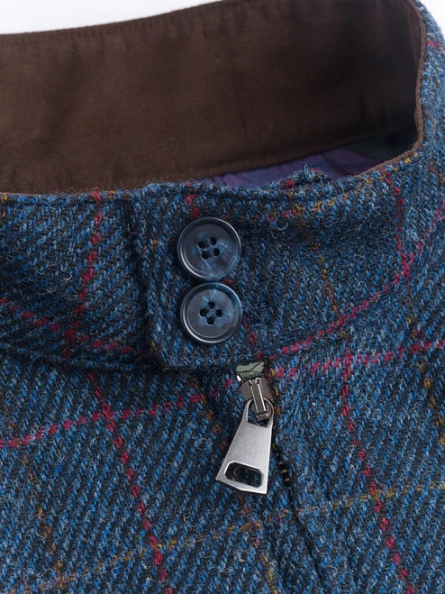Combining the heritage and quality of pure wool Harris Tweed with the more recent pedigree of the 1950’s classic, zip-up Harrington windcheater. This is a happy marriage that has all-round benefits; a smart, casual, warm and hard-wearing jacket in navy blue tweed tones.