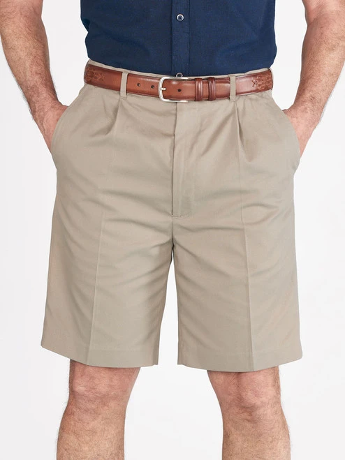 The smarter side of casual; cotton chino shorts with a discreet leg length and our expanding comfort waistband in a fab sand brown colour. A French bearer fastening for a secure trim front, single pleat, zip fly, two deep side pockets and two back pockets.