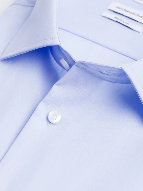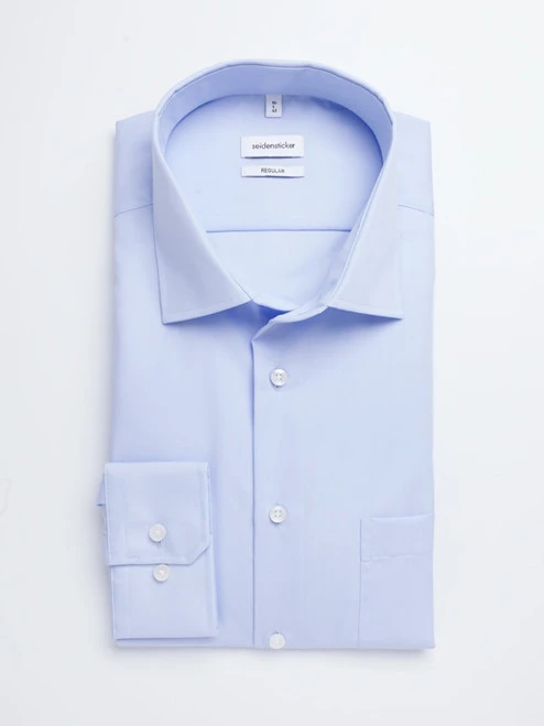 Seidensticker have been making top quality garments for over 100 years. Every shirt is made to the highest standards and undergoes 142 checks before leaving the factory. Cut from fine, smooth 100% cotton this sky blue non-iron shirt not only looks amazing, it will make your life easier too! Regular, straight fit with two back darts for comfort and ease of movement.Â