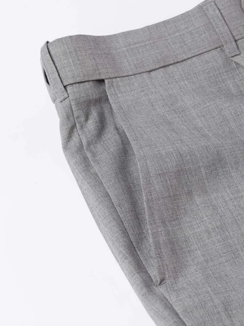 ‘Super 100s’ is a weaver’s term that refers to the superfine texture of the wool used to make these light grey trousers. Light as thistledown and silky soft. They are cool on warm days and warm on cool ones. Smart choice!