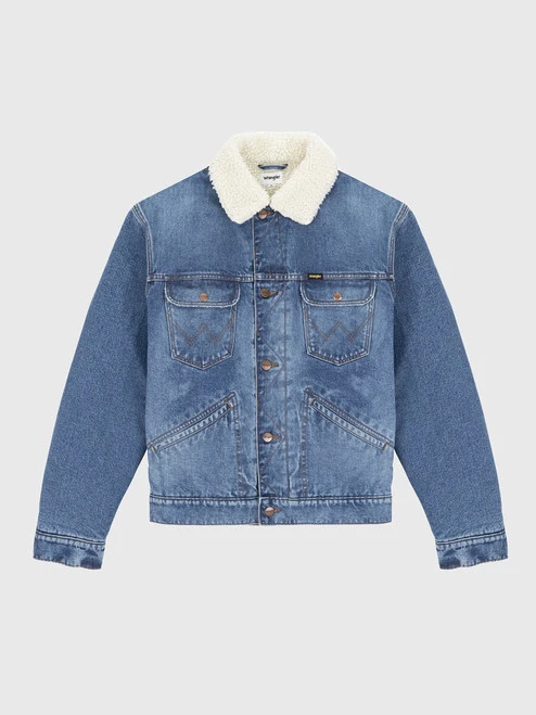 Timeless and durable, Wrangler’s statement denim jacket is upgraded for the season with a sherpa fleece lining for added warmth and comfort. Crafted from rigid non-stretch denim with classic western detailing and zig-zag stitching. The action back construction enhances movement, making it the perfect jacket for everyday winter wear.